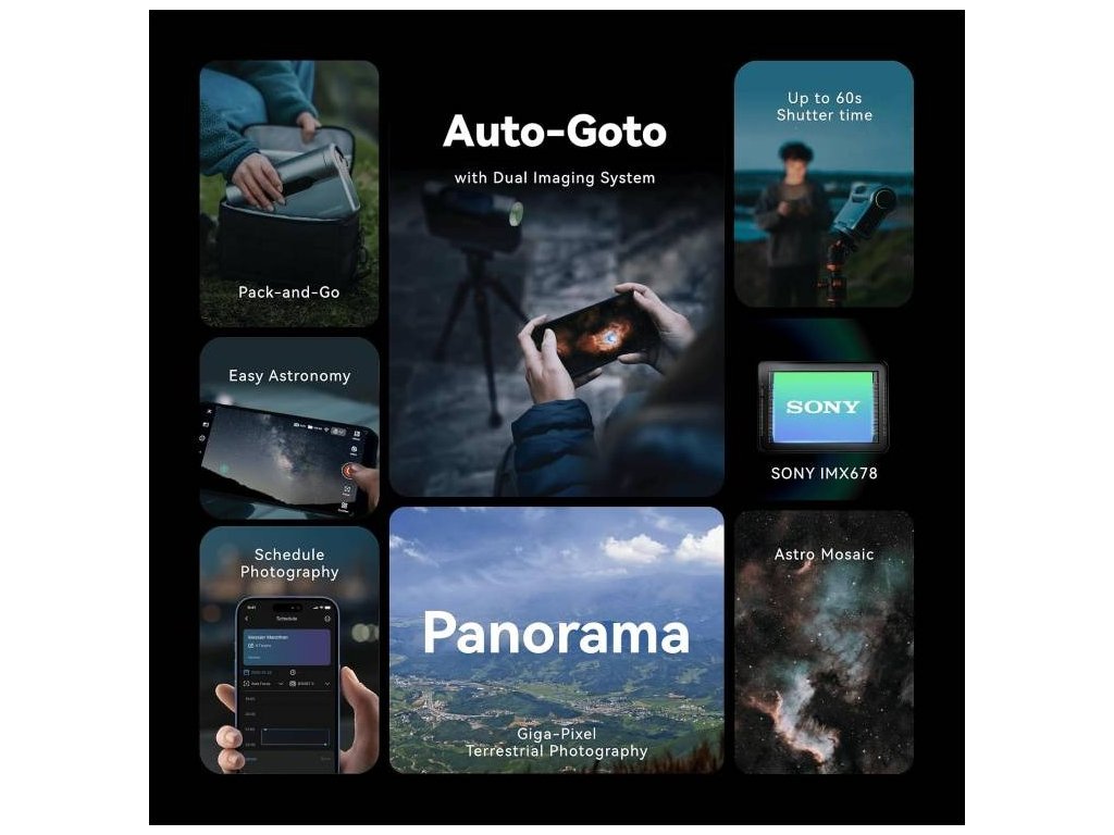 - Sony IMX678 STARVIS 2 senzor s 4K rozlíšením: Zaisťuje ostrý obraz a kvalitu detailov pri fotografovaní Mesiaca, galaxií alebo hmlovín.
