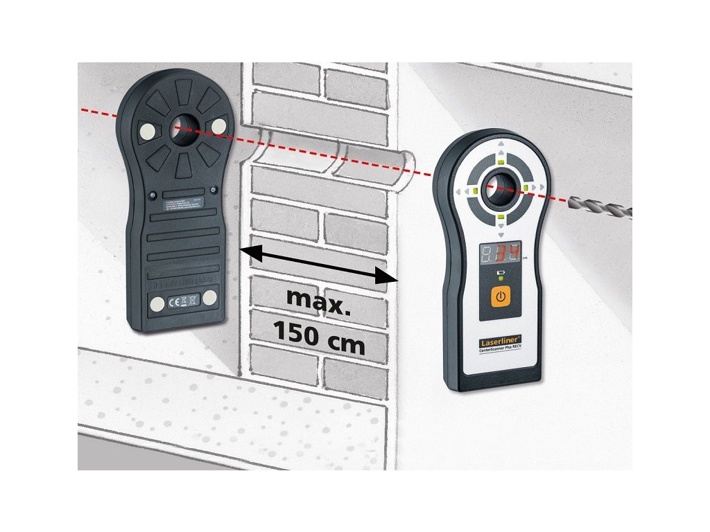 Tento vysoko presný prístroj sa skladá z vysielača a prijímača a poskytuje bezpečné vyrovnanie vrtného kanála pri vŕtaní cez steny a stropy až do hĺbky 120 cm. Lokalizáciu poskytujú ľahko viditeľné LED indikátory a akustické signály, ktoré možno vypnúť. Stredenie zabezpečujú dobre dostupné značkovacie pomôcky vo vysielači a prijímači. Požadovanú hĺbku vŕtania je možné určiť až do 150 cm pomocou integrovaného LCD displeja. Pri detekcii cudzích predmetov sa odošle vizuálne a akustické varovanie. Vysielač a prijímač pohodlne padnú do ruky vďaka ergonomickému dizajnu. 4 ročná záruka