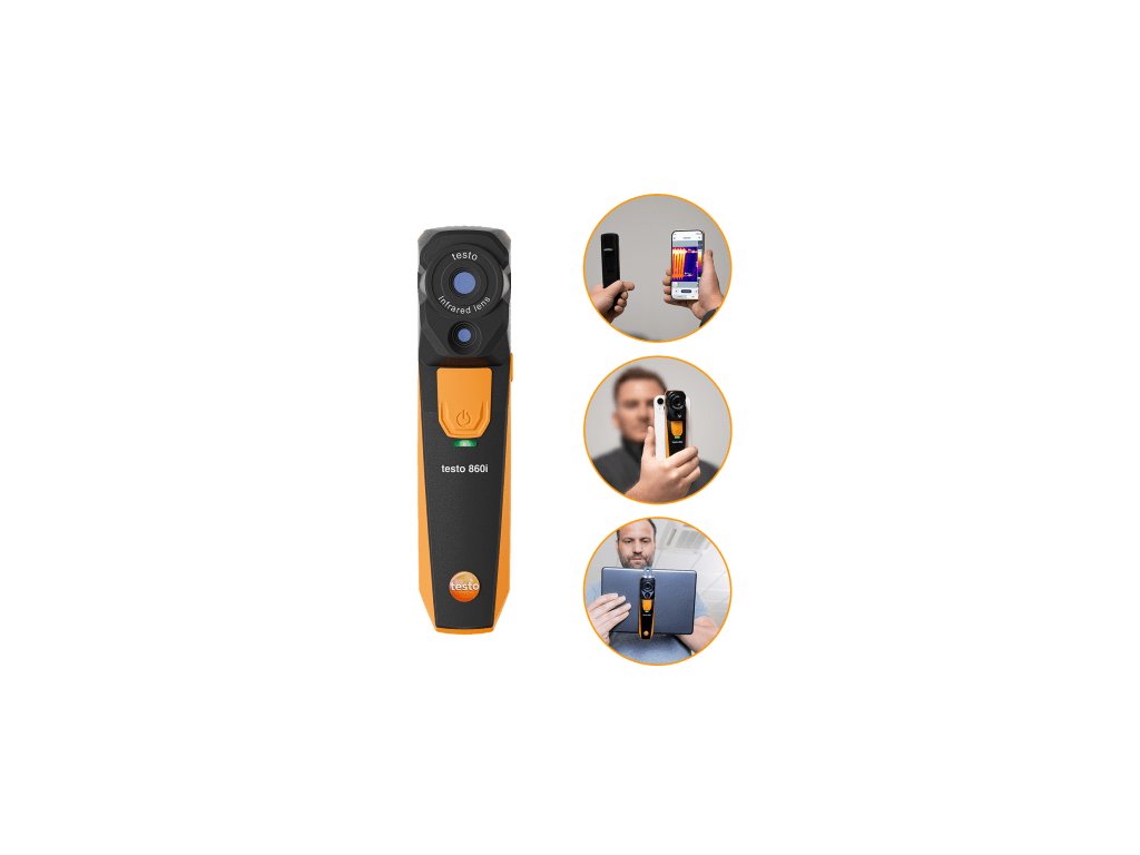Nová bezdrôtová termokamera pre smartfóny, testo 860i, s jednoduchým ovládaním a zobrazením v testo Smart App, je ideálna na rýchle náhodné kontroly vo vodovodnom potrubí, kúrení, klimatizácii, údržbe, budovách a v mnohých ďalších aplikáciách.